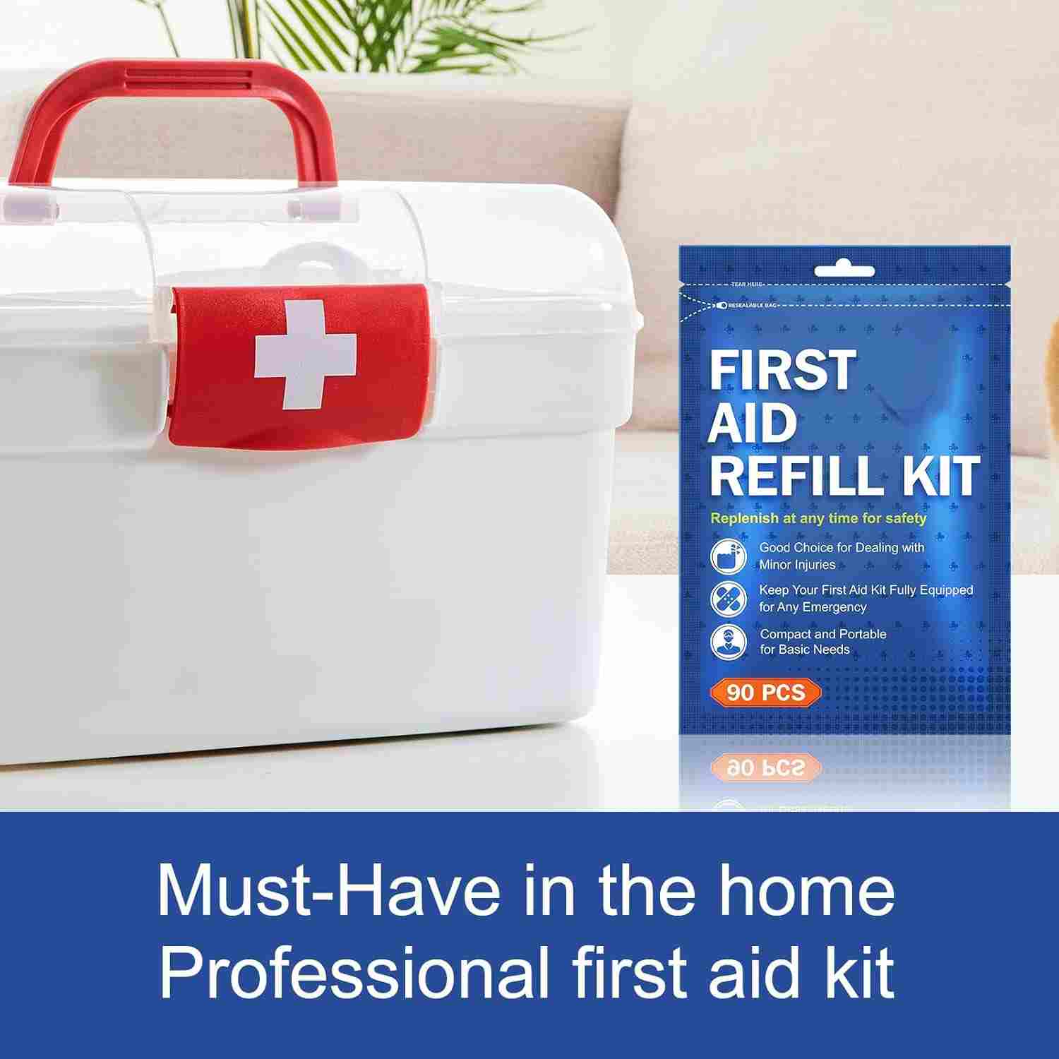 First Aid Refill Kit on välttämätön turvaratkaisu jokaiselle perheelle, joka on suunniteltu käsittelemään tavallisia vammoja ja hätätilanteita kotona. Se sisältää siteitä, antiseptisiä pyyhkeitä, sakset, teippiä, käsineitä ja muita lääkintätarvikkeita, jotka auttavat sinua reagoimaan nopeasti haavoihin, palovammoihin, nyrjähdyksiin ja pieniin onnettomuuksiin. Kompakti ja hyvin järjestetty sarja takaa mielenrauhan pitämällä tärkeät terveydenhuollon tuotteet helposti saatavilla sekä aikuisille että lapsille.