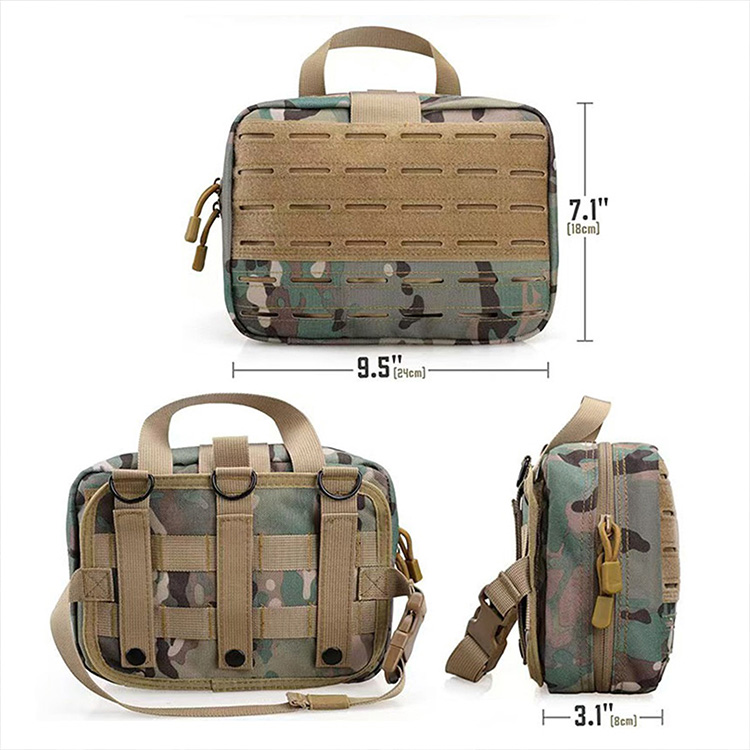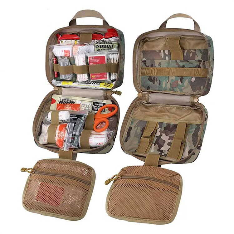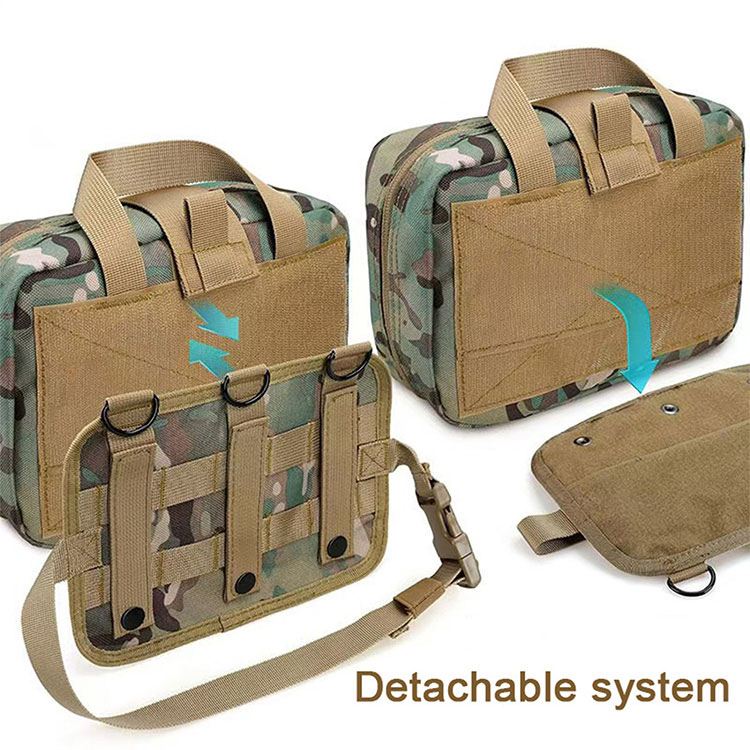 Taktisen MOLLE Medical Pusch -sovelluksessa on useita säilytystaskuja ja elastisia nauhoja sijoittamista varten, ja repiä-off-suunnittelu mahdollistaa nopean pääsyn ensiapuun. Valmistettu 600D -kankaasta, se on vedenpitävä ja kestävä. MOLLE -järjestelmän avulla se voidaan solmia vyötäröllä, autossa tai reppulla.